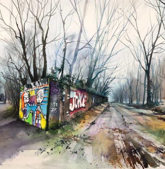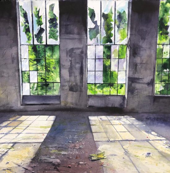Mon travail personnel est consacré à la friche industrielle. Cet univers me fascine et m’interpelle. J’affectionne tout particulièrement ces vieux bâtiments qui ont laissé une empreinte de notre passé. La nature y reprend doucement ses droits. Je recherche presque toujours des ambiances et des lumières de contre-jour. J’aime également peindre une vieille porte, un petit bout de serrure, un détail de rouille riche de toutes les teintes et textures. J’entraîne le public dans des lieux oubliés et délaissé que je fais redécouvrir et renaître.